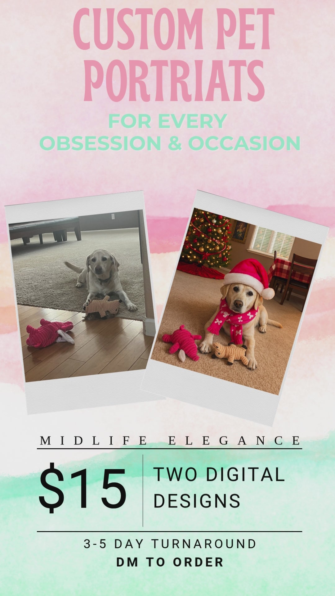 Whether it’s Christmas, a birthday, or just your daily obsession with your furry best friend… I’ll turn your pet’s photo into a one-of-a-kind masterpiece! 💕