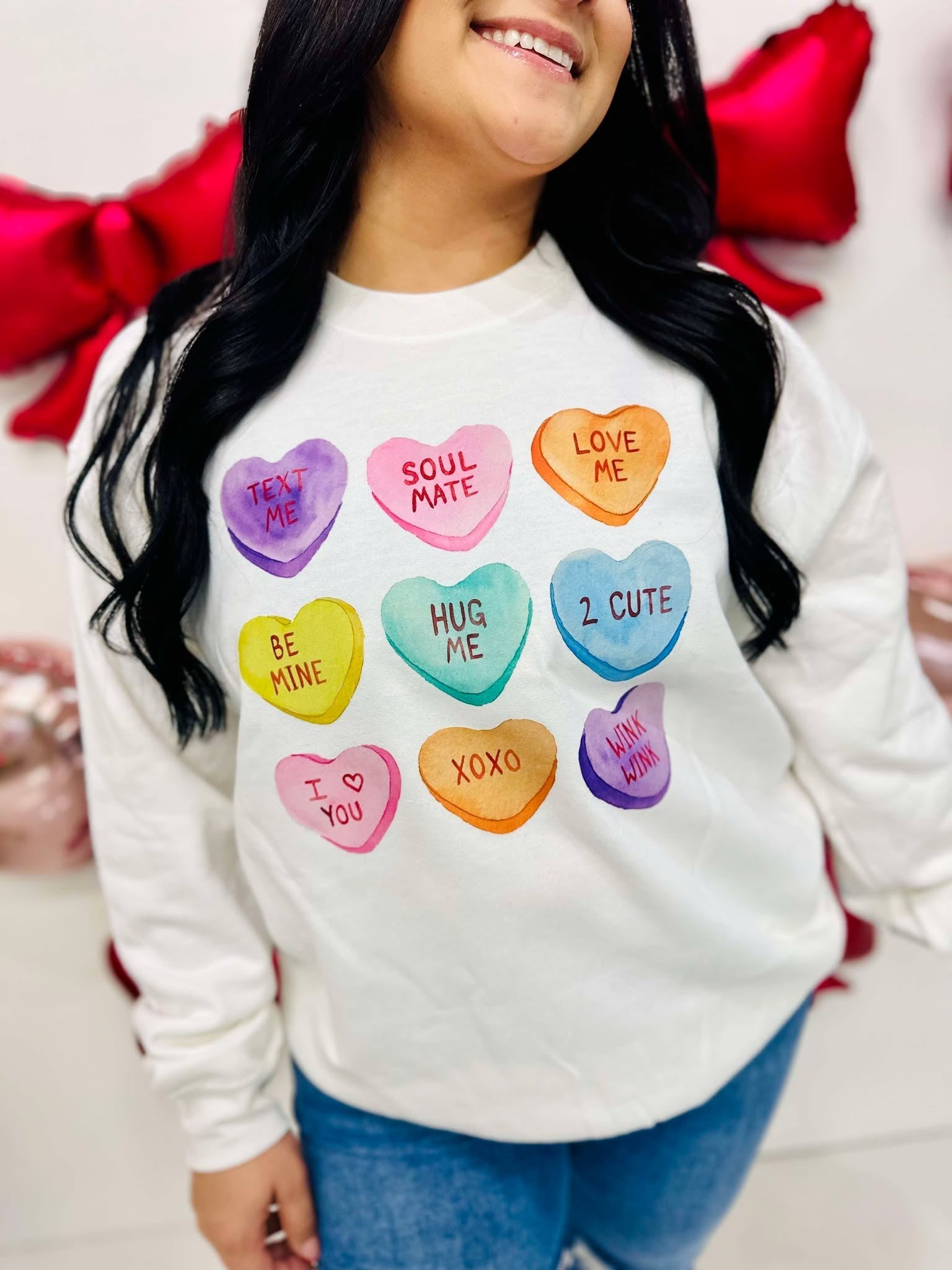 Watercolor Conversation Heart Candy DTF Sweatshirt